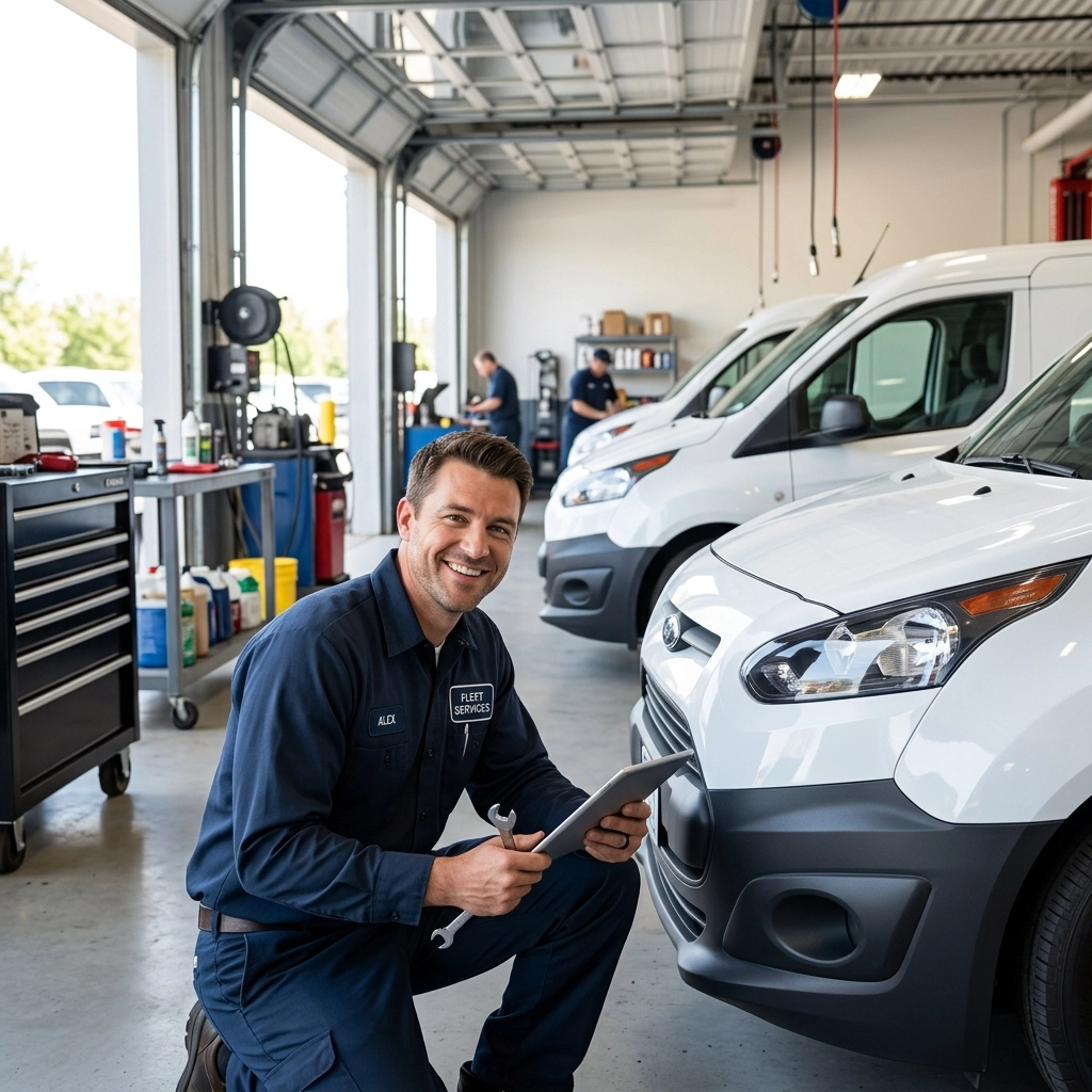 Professional mobile mechanic providing onsite fleet maintenance and car repair services in Green Bay for delivery vans.